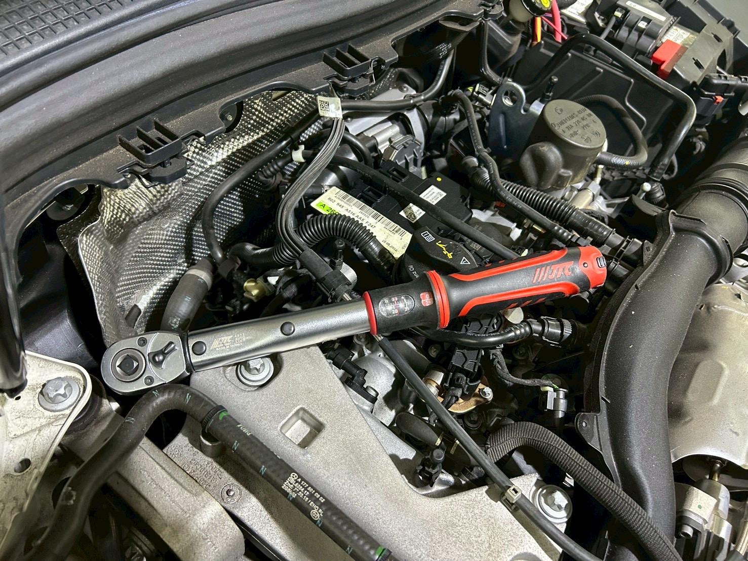 油底殼螺絲及機油芯按賓士原廠標準25(Nm)上鎖