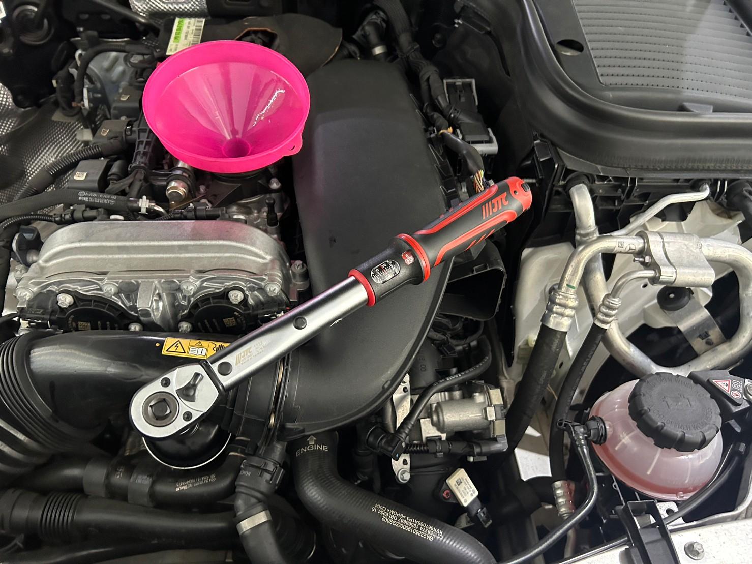 油底殼螺絲及機油芯按賓士原廠標準25(Nm)上鎖