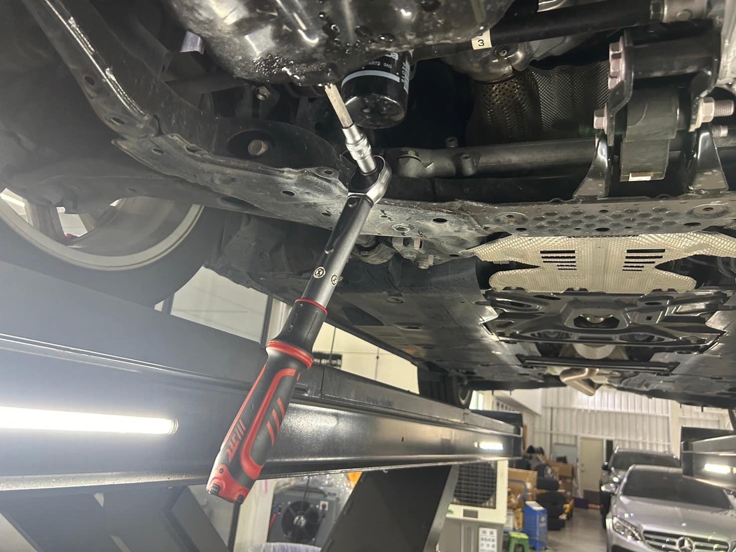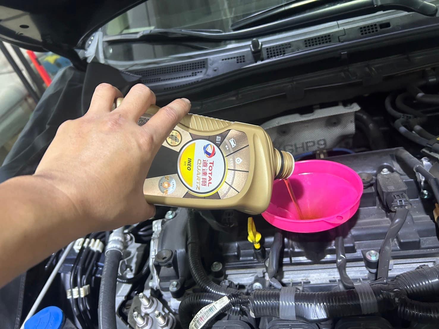 排放舊機油加注認證機油、更換原廠機油濾心